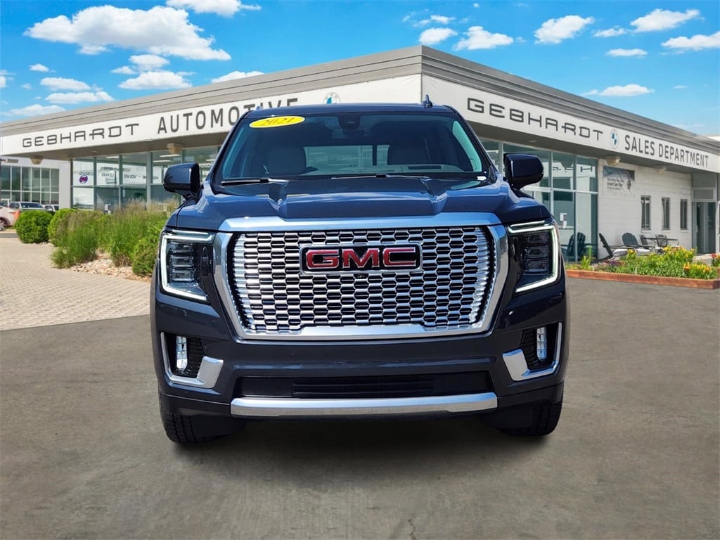 FRESH TRADE!, CLEAN!, LOADED!, DENALI PACKAGE, Yukon Denali, 4D Sport Utility, EcoTec3 6.2L V8, 10-Speed Automatic with Overdrive, 4WD, Hunter Metallic, Teak/Light Shale w/Perforated Leather Seating Surfaces, 15" Diagonal Multi-Color Head-Up Display, 3rd Row 60/40 Power-Folding Split-Bench Seat, 3rd row seats: split-bench, ABS brakes, Adaptive suspension, Apple CarPlay/Android Auto, Auto High-beam Headlights, Bose 14-Speaker Surround w/CenterPoint, Delay-off headlights, Dual-Pane Panoramic Power Sunroof, Emergency communication system: OnStar and GMC connected services capable, Front anti-roll bar, Front dual zone A/C, Garage door transmitter, Hands-Free Power Programmable Rear Liftgate, HD Surround Vision, Heads-Up Display, Heated & Ventilated Driver & Front Passenger Seats, Heated 2nd Row Outboard Position Seats, Heated Automatic Steering Wheel, Heated steering wheel, Hill Descent Control, Inside Rear-View Auto-Dimming Mirror, Lane Change Alert w/Side Blind Zone Alert, Lane Keep Assist w/Lane Departure Warning, Magnetic Ride Control Suspension, Navigation System, Occupant sensing airbag, Overhead airbag, Perforated Leather Seating Surfaces, Power Liftgate, Power Release 2nd Row Bucket Seats, Rear anti-roll bar, Remote keyless entry, Steering wheel memory, Universal Home Remote.